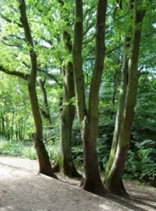 The five-trunked oak bowl you see in front shows the effect of cutting branches down for charcoal production, iron melting, and domestic use.